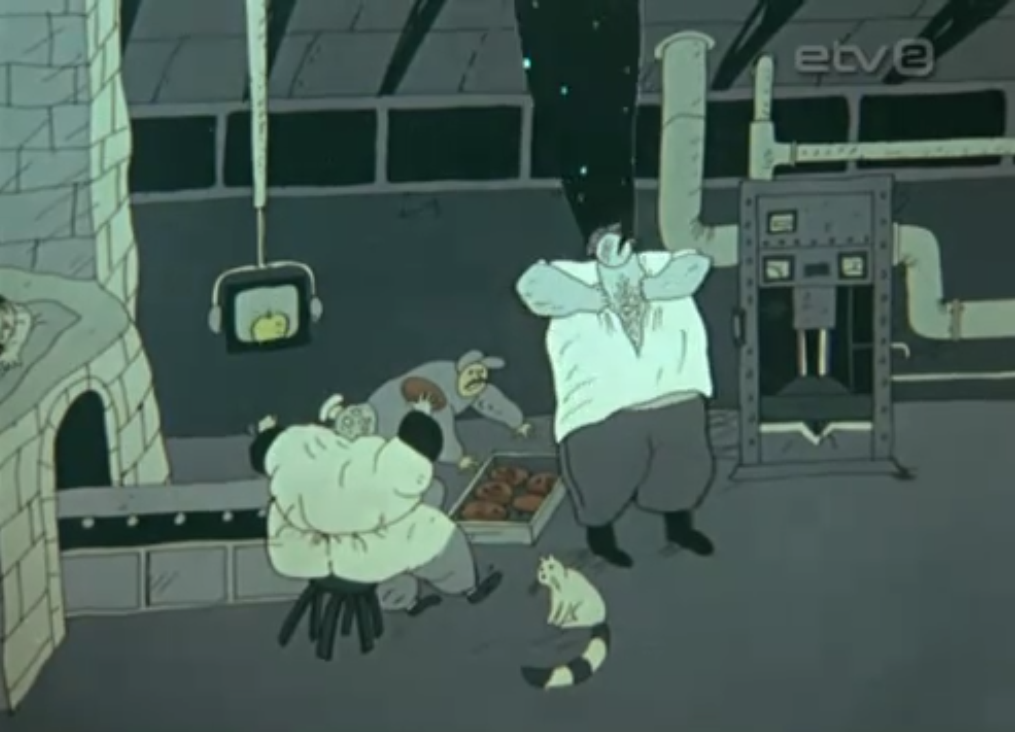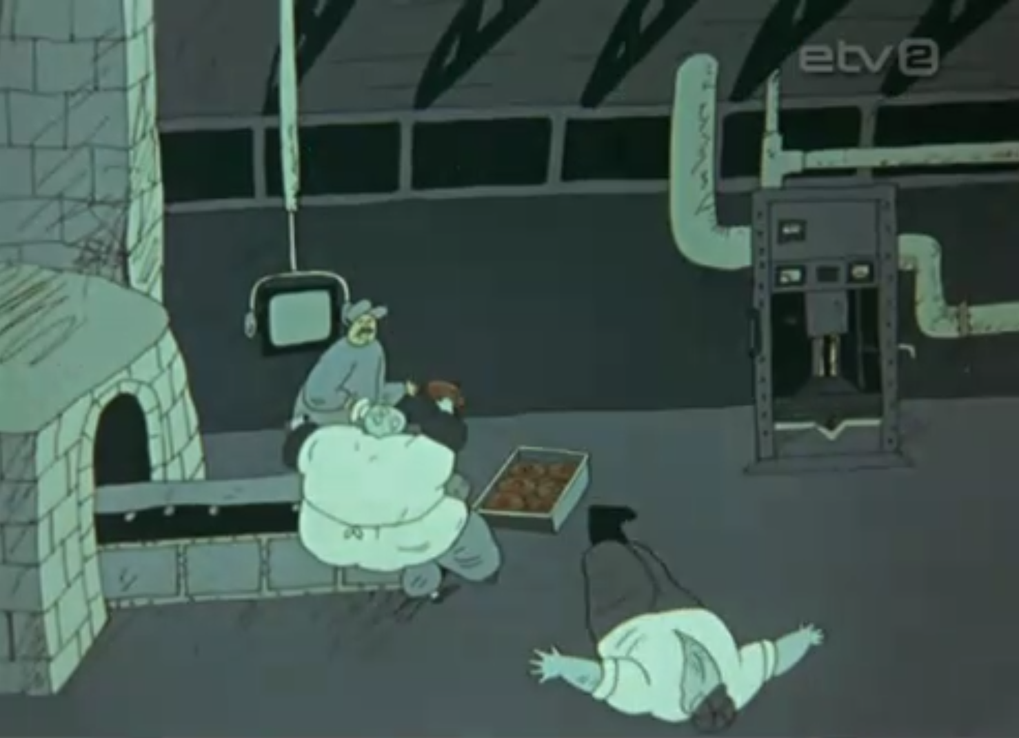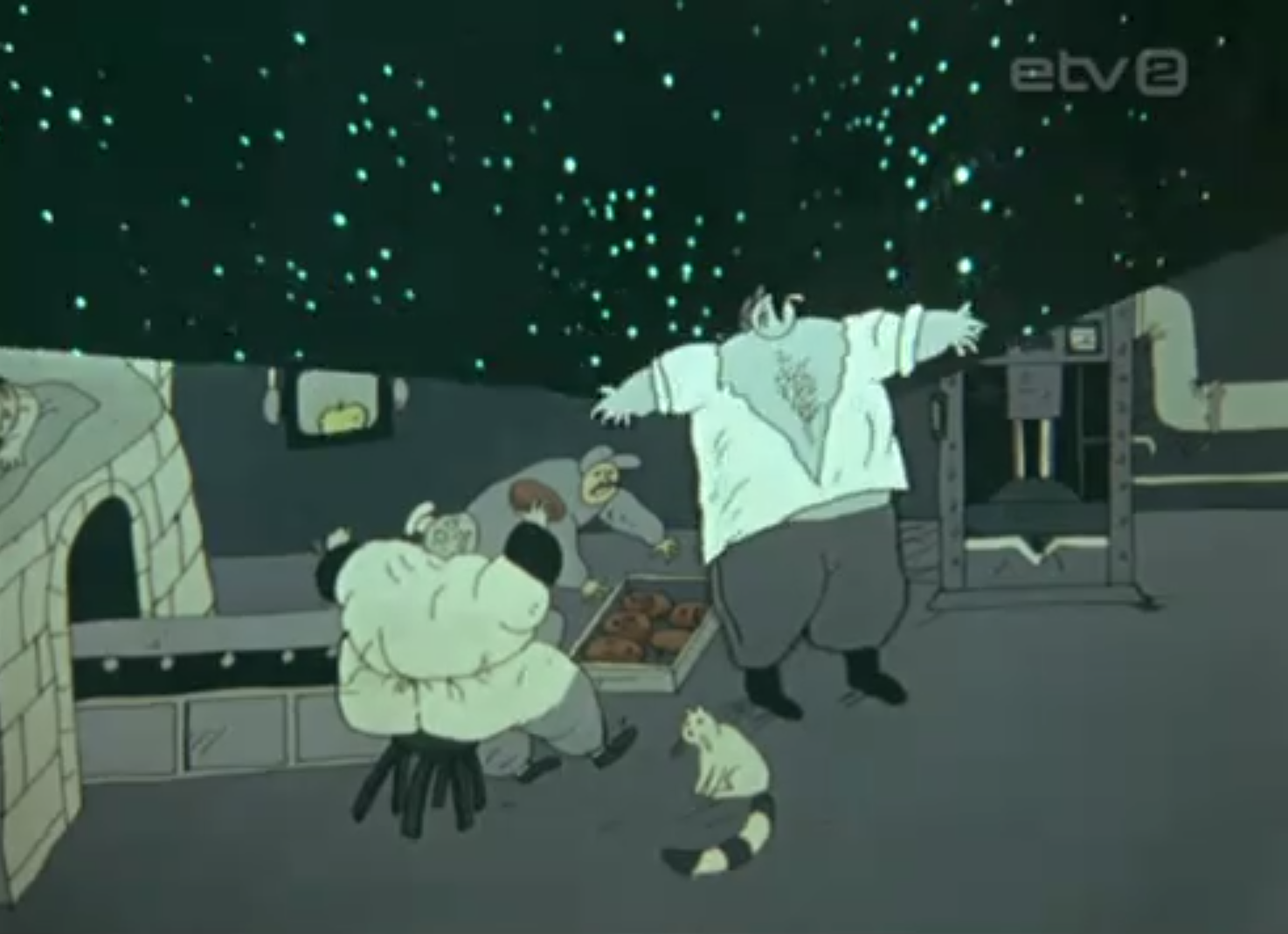 OP: I remember very well that Priit drew and started with the design and style. There were lots of preparatory drawings and a large storyboard when we asked for funding. I remember the sequence with the ship where the sailors try to save the boat.
