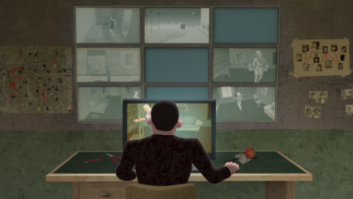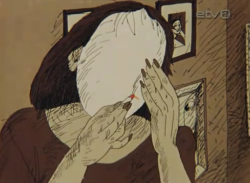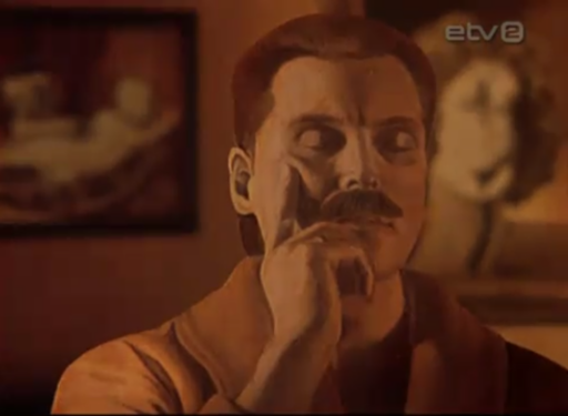 PP: The first version of Breakfast on the grass had only one story. When I started to write I understood that it’s going to be maybe too complicated to understand. Then I came to the idea that there could be four stories. This game also offers all the possibility to use different styles. George, Georgi, is probably very rich, he’s living in a fantastic place with a view to the sea from the window. We shot this sequence with one of the animators. The photographs were handled by Mati Kütt. And it was painted using photographs blown up on the crossover. The music is very classical music and the voices are so beautiful.
