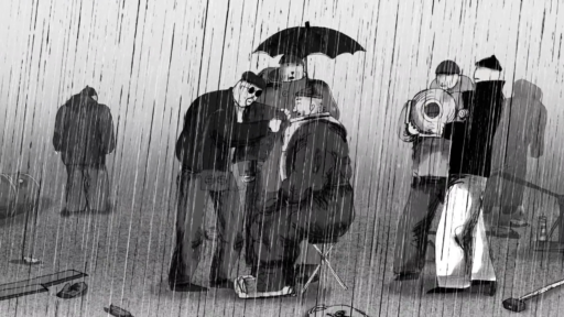 During the storyboarding of Divers in the rain, we saw Satoshi Kon’s film Paprika at the cinema in Tallinn. That film is also about dreams, and I remember that when we got home, we said to ourselves that this was exactly what we didn’t want to do. We wanted to limit the dreams part as much as possible and make it really minimalist so that we could focus on the sound.