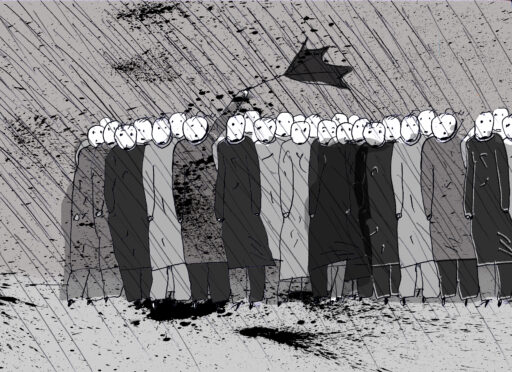 OP: Priit developed a special technique for drawing these characters in the film. The world of men is very brutal, as are the drawings and lines.
