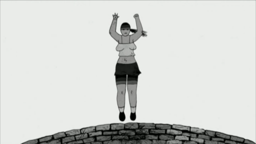 That’s the introduction for the movement because if we take all your films, we can see that the movement is not just the classic cartoon movement which is mainly based on elasticity. But there are a lot of different movements. For example a hand comes over a cloth and the cloth comes to the hand instead. Other example: we just have vibrating lines. Other example: the image is static, the shape is static. Or a sachadic movement as we can see in Pilots on the Way Home. Sometimes you use childish jerking movements. Sometimes it is choreography but functioning.